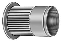 Rivet Nut, Knurled Flanged, Aluminum, Plain Finish, Thread Size 1/4-20, Length 0.590, Grip Range 0.079 to 0.138, Drill Size 25/64, Hole Size 0.350, Head Height 0.060, Head Dia. 0.510, Body Dia. 0.350, Flange Dia. 0.500, Application Used To Securely Fasten Metals, Fiberglass Or Rigid Plastic Materials By Creating Permanent Threads, Ideal For Materials Considered Too Thin For Tapered Threads, Package Quantity 50